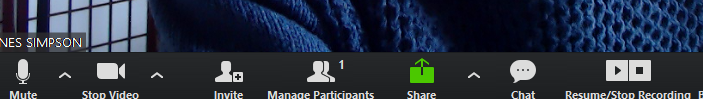 These controls are at the bottom of your Zoom window – if you need to adjust anything or use chat