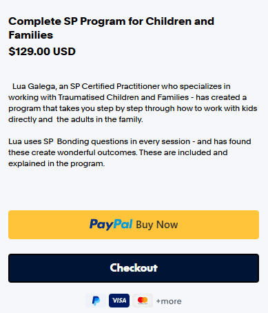 And Lua Galega, an SP Certified Practitioner who specializes in working with Traumatised Children and Families – has created a program that takes you step by step through how to work with kids directly and the adults in the family.